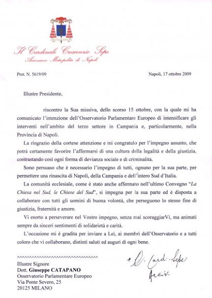 CATAPANO GIUSEPPE : Congratulazioni Cardinale SEPE