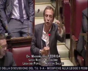 ROMA – “Non capisci un cazzo, incapace, vattene, capra”. Un furioso Gianluca Pini, deputato leghista, si è rivolto così a Laura Boldrini, presidente della Camera. Mentre il capogruppo della Lega Massimiliano Fedriga stava finendo il suo intervento, l’intervento della Boldrini ha scatenato la reazione di Pini. Purtroppo per lui, il microfono del suo scranno era acceso per la diretta web della seduta parlamentare. Alla Camera è muro contro muro tra la Lega e la presidente Laura Boldrini sulla legge sulla cittadinanza. La Lega, che con Fdi è radicalmente contraria al provvedimento già approvato dal Senato, chiede di poter esaminare un numero emendamenti al testo maggiore rispetto a quello che è stato concesso dalla presidente della Camera sulla base del contingentamento dei tempi. Ma Boldrini, confortata dai funzionari, nicchia e si barrica dietro la prassi ed il regolamento, scatenando l’ira del Carroccio, cui non concede la convocazione della conferenza dei capigruppo. Ed è bagarre: con la Lega che annuncia per domani un sit dei propri parlamentari a piazza Montecitorio “contro la legge sullo ius soli e per protestare sulla conduzione dei lavori parlamentari dei presidenti di Camera e Senato”. Ma la presidente di Montecitorio tiene duro: “Non soccombo”, dice ai capigruppo: e farà riprendere le votazioni in Aula sui 38 emendamenti al testo già domani. E’ già sera quando, bocciate le pregiudiziali sul provvedimento e la richiesta avanzata da Ignazio La Russa di Fdi di far slittare alla prossima settimana l’inizio dell’esame del provvedimento sullo Ius soli, la Lega chiede, a colpi di richiami al regolamento, di poter segnalare più emendamenti di quelli concessi dalla presidenza.