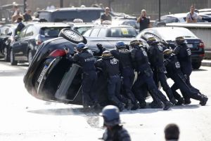 Parigi paralizzata, stamane, per una raffica di scioperi simultanei nei trasporti aerei, negli ospedali e nelle scuole. Nel ‘martedi’ nero’ della capitale francese, inoltre, circa 1500 tassisti hanno messo a ferro e fuoco la città, bloccando gli accessi agli aeroporti di Charles De Gaulle e Orly (già funzionanti a singhiozzo per l’astensione dal lavoro dei controllori di volo) e scatenando una guerriglia urbana con lanci di molotov e pneumatici bruciati. La situazione è stata particolarmente tesa a Porte Maillot, nel 16esimo arrondissement, dove la polizia è dovuta intervenire con i lacrimogeni e ha fermato 20 persone; nello scalo di Orly, inoltre, un tassista che non aveva aderito allo sciopero è stato aggredito dai colleghi ed è rimasto ferito. Disordini e blocchi anche in altre città, soprattutto Marsiglia, Lille e Tolosa.